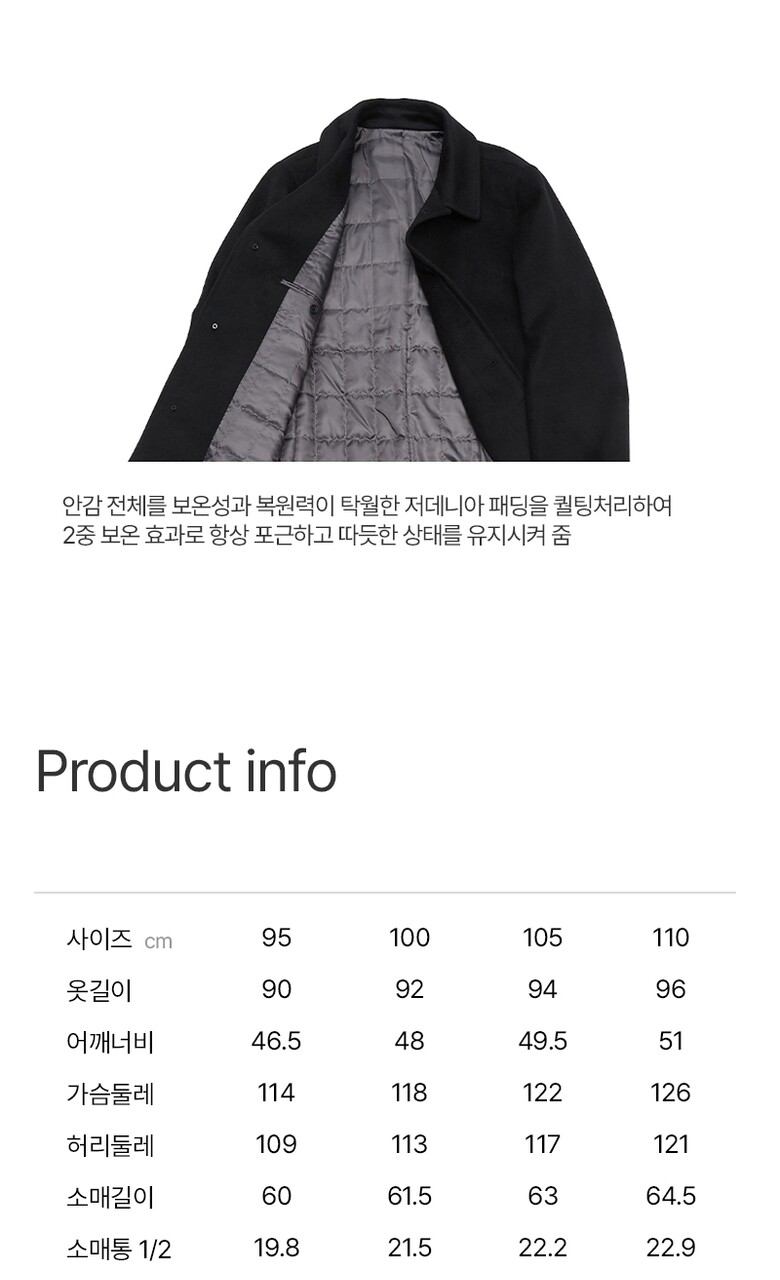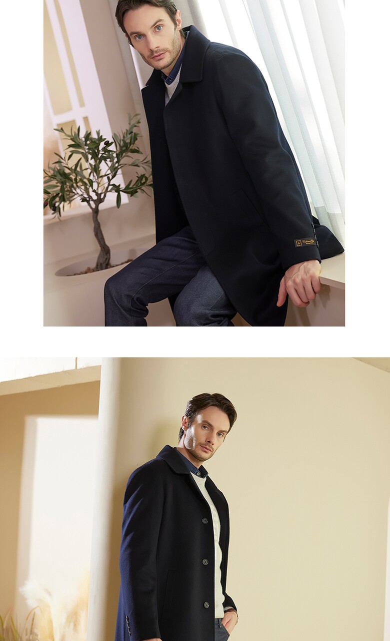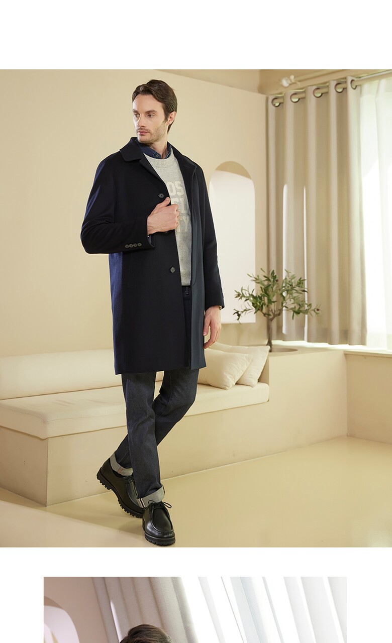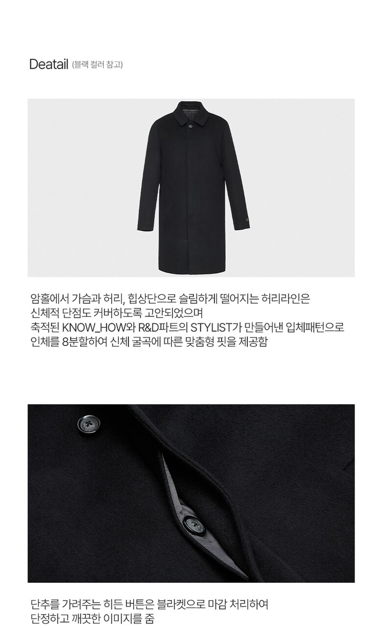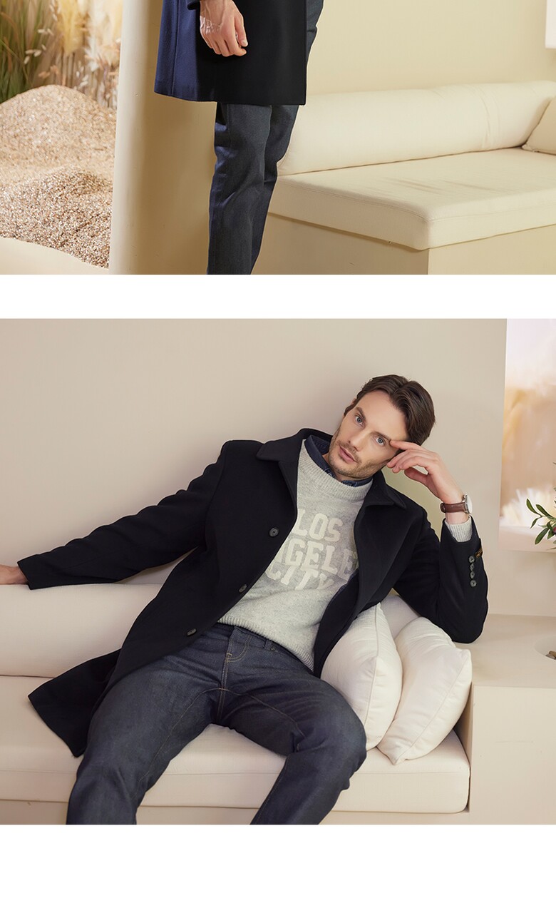워모 남성 울 캐시미어 블렌딩 퀼티드 트리밍 코트 네이비