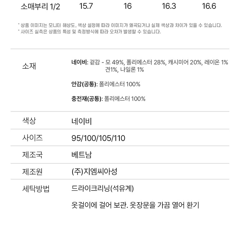 6. 세탁방법 및 취급시 주의사항 | 상세페이지 참조 |