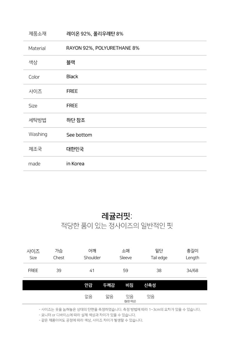 | 1. 제품 소재 (섬유의 조성 또는 혼용률을 백분율로 표시, 기능성인 경우 성적서 또는 허가서) | 레이온92% 폴리우레탄8% |