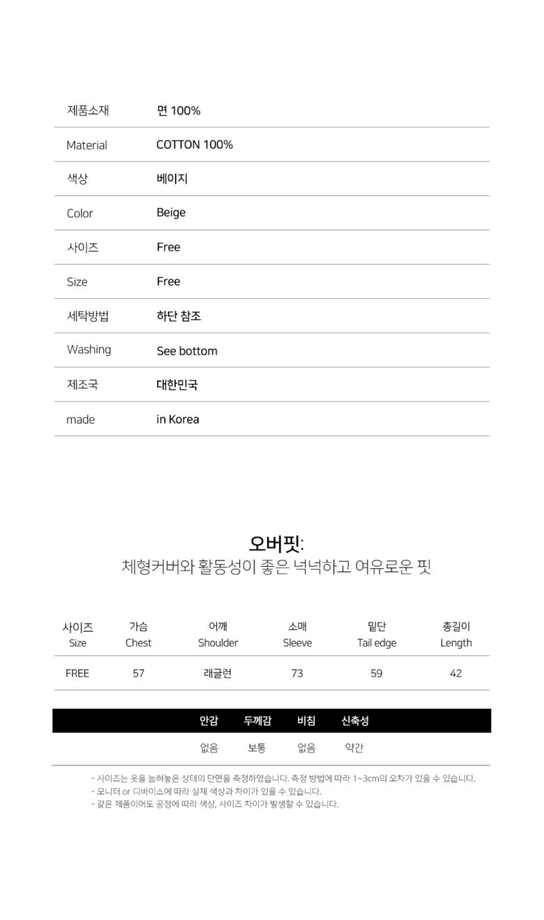 | 1. 제품 소재 (섬유의 조성 또는 혼용률을 백분율로 표시, 기능성인 경우 성적서 또는 허가서) | 면 100% |