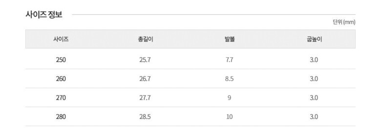 | 3. 치수 | 상세페이지 참조 |