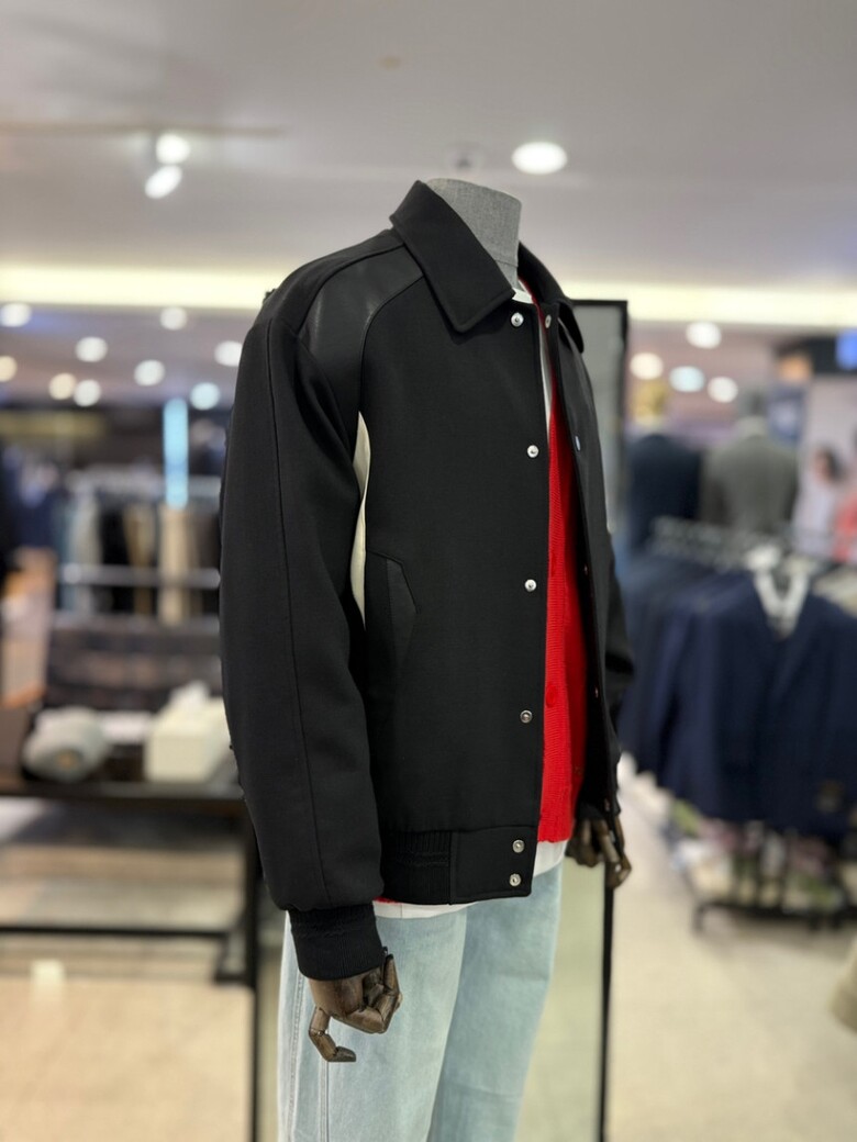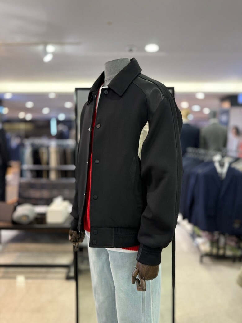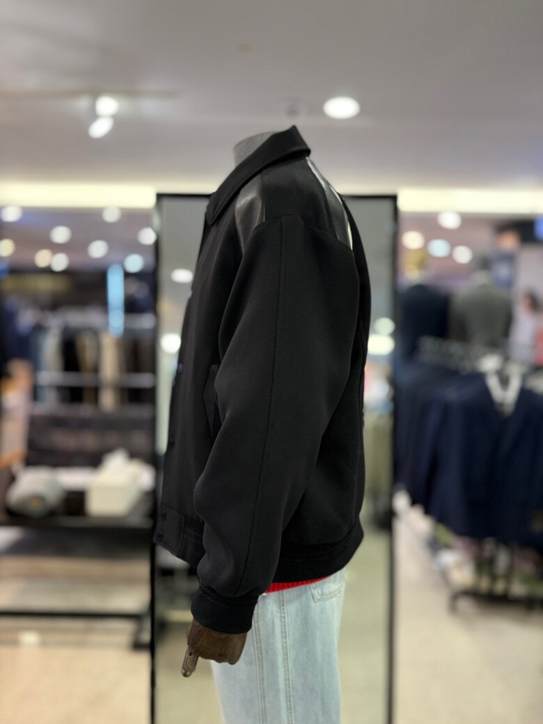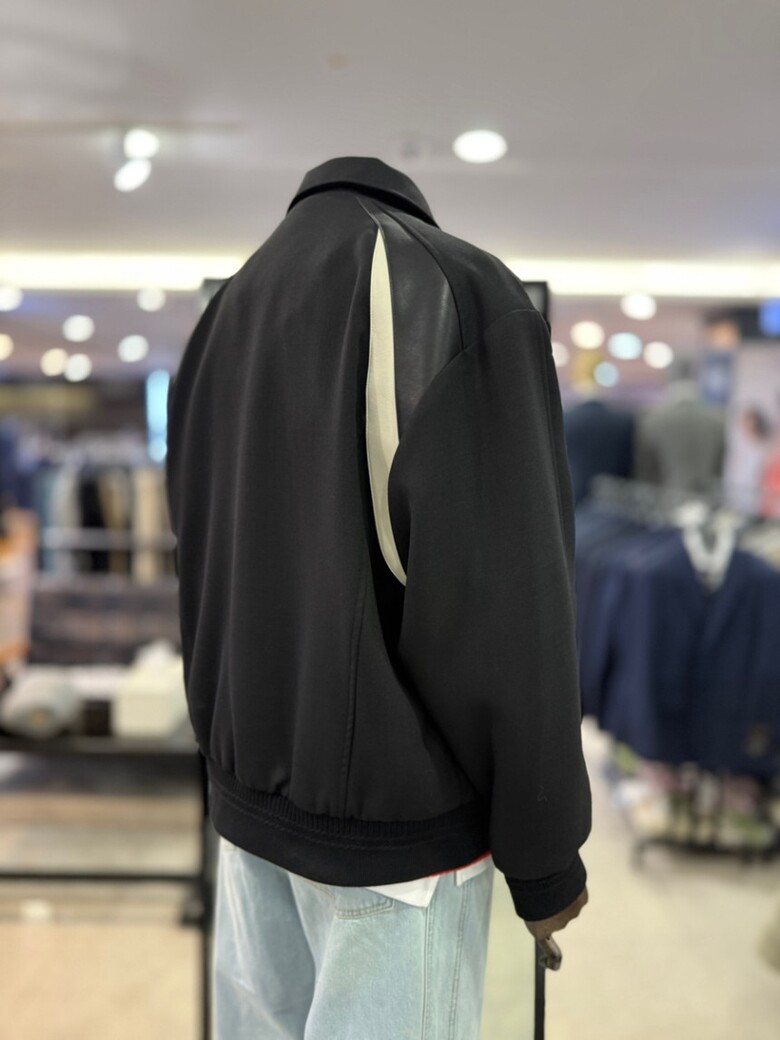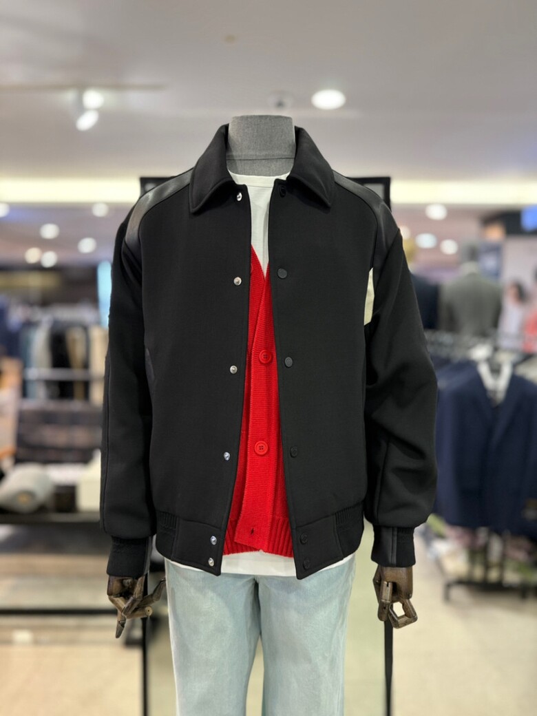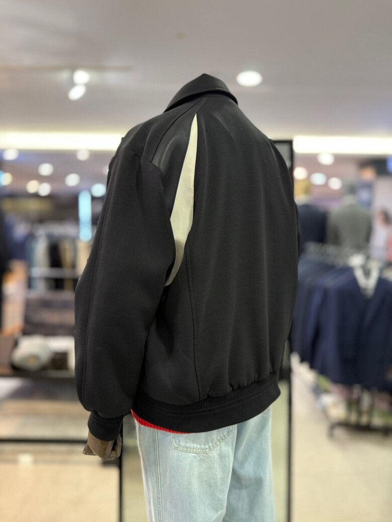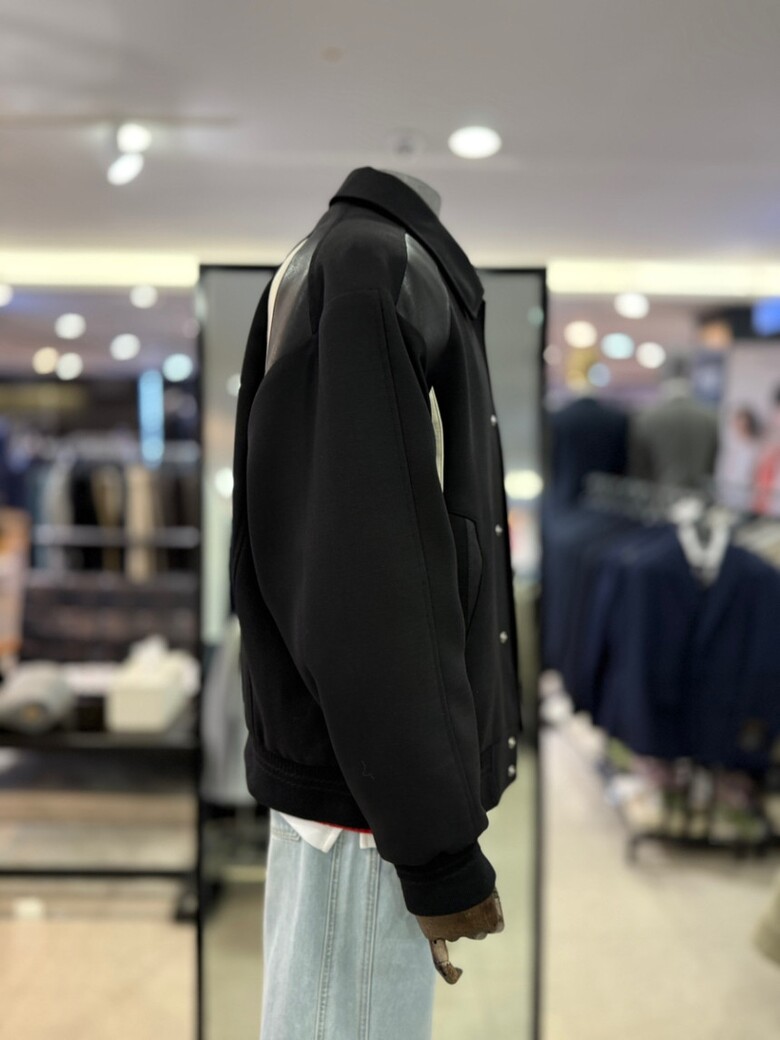 블랙 세미오버핏 레더배색 바시티 점퍼