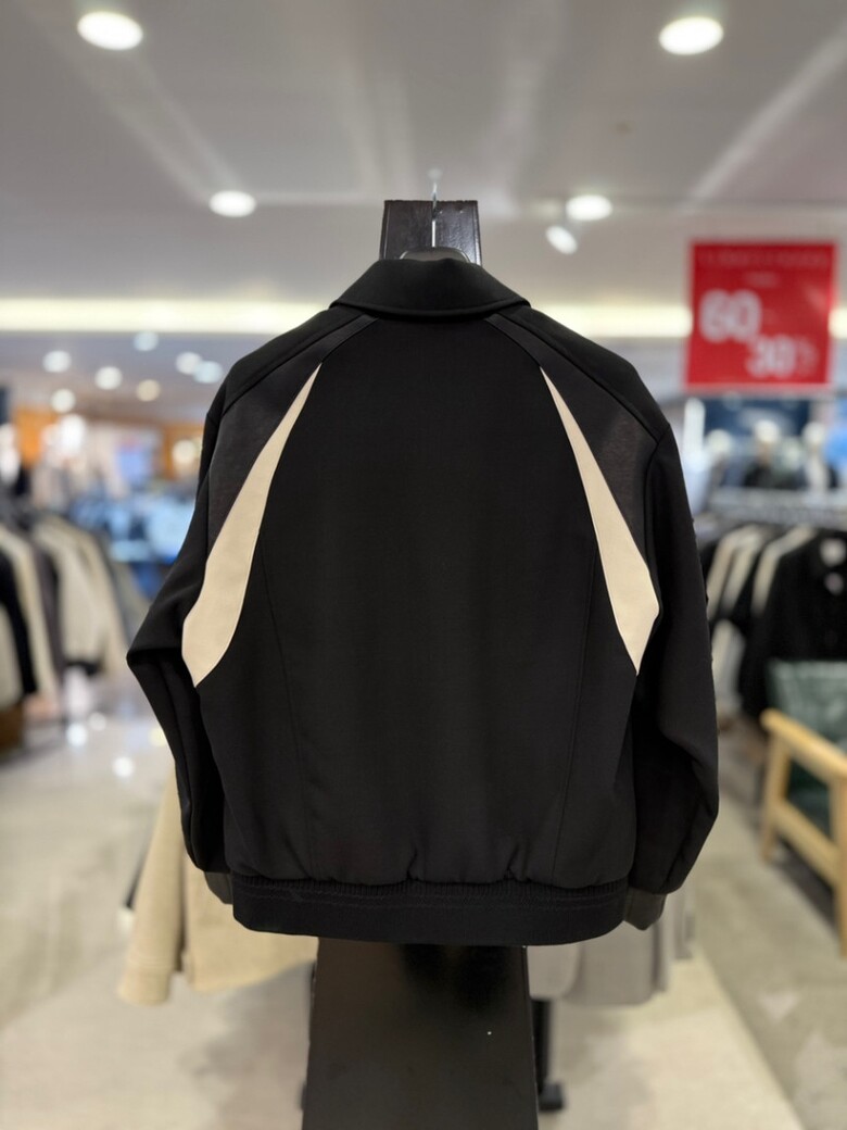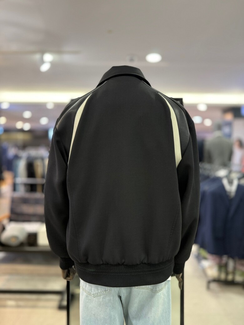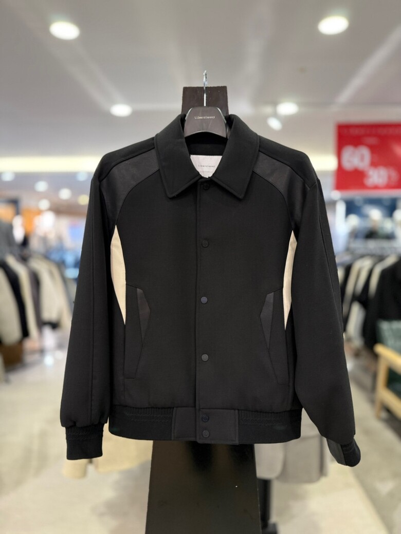 리버클래시 블랙 세미오버핏 레더배색 바시티 점퍼 LLS22512