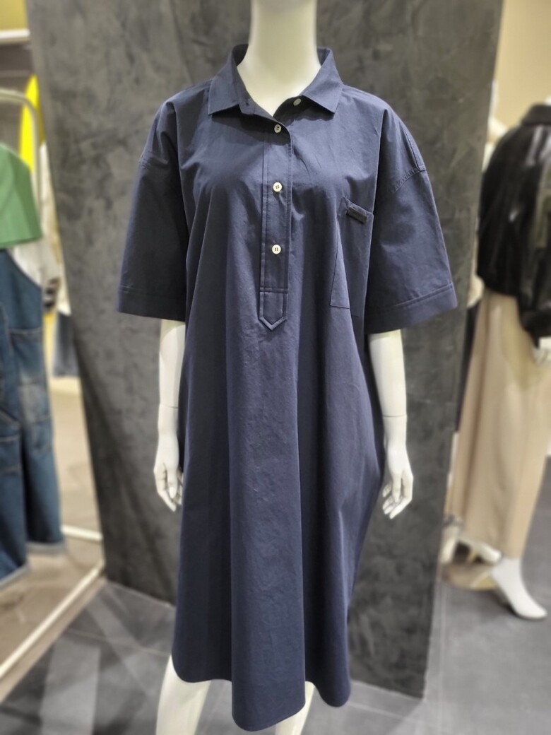 가볍고 탄탄한 텍스처의 코튼 혼방 소재로 제작된 셔츠 원피스입니다.