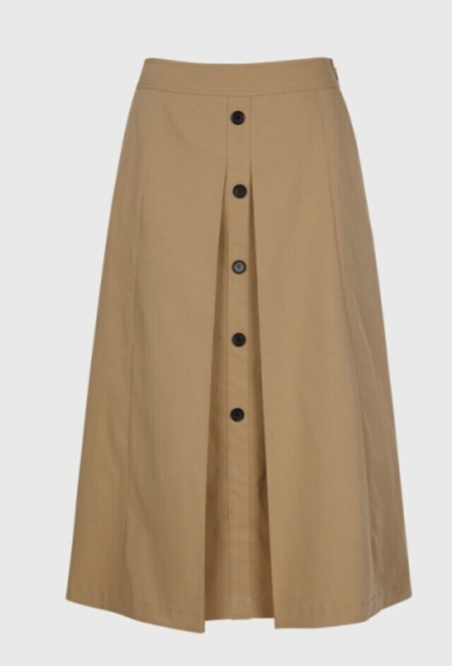 심플한 느낌을 주는 단정한 플레어스커트입니다. 스커트폭이 넓지 않아 날씬해보여요.
