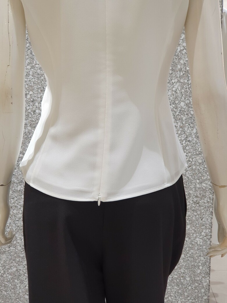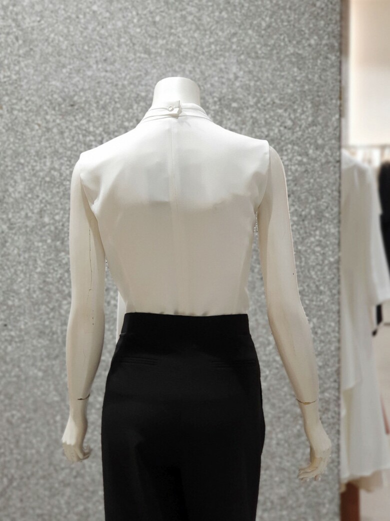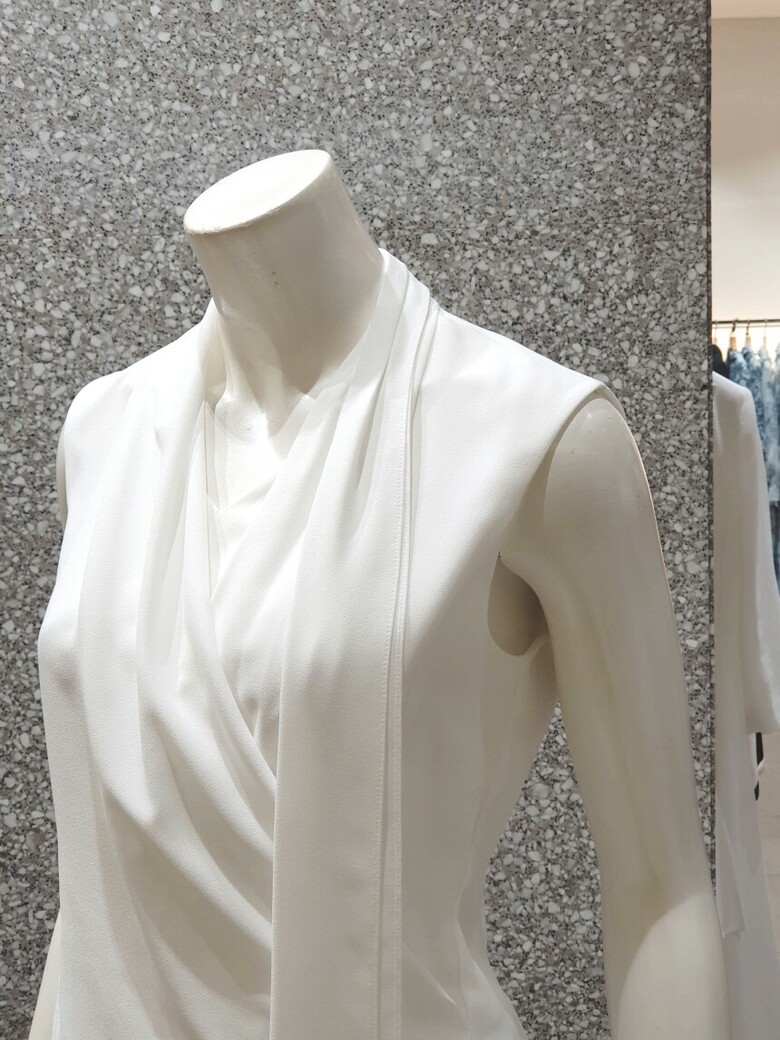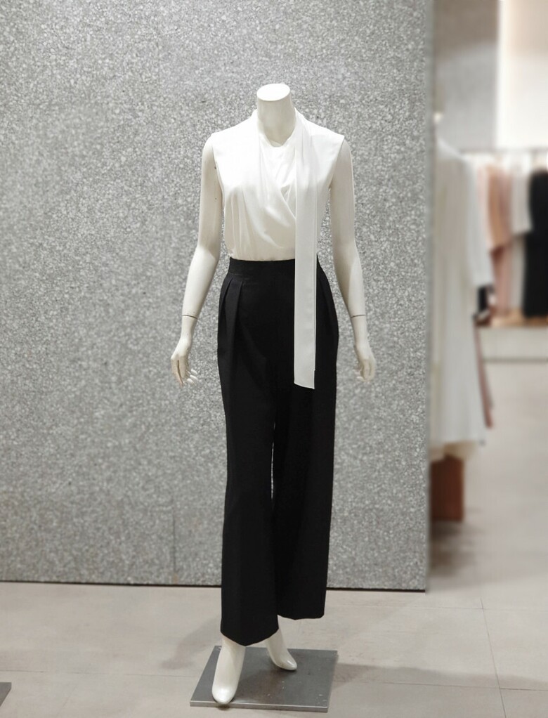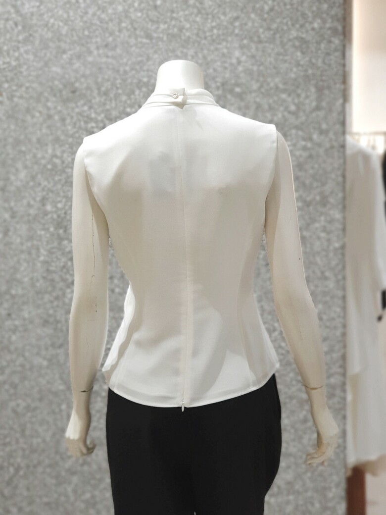 우아한 드레이프 실루엣이 돋보이는 민소매 블라우스입니다.