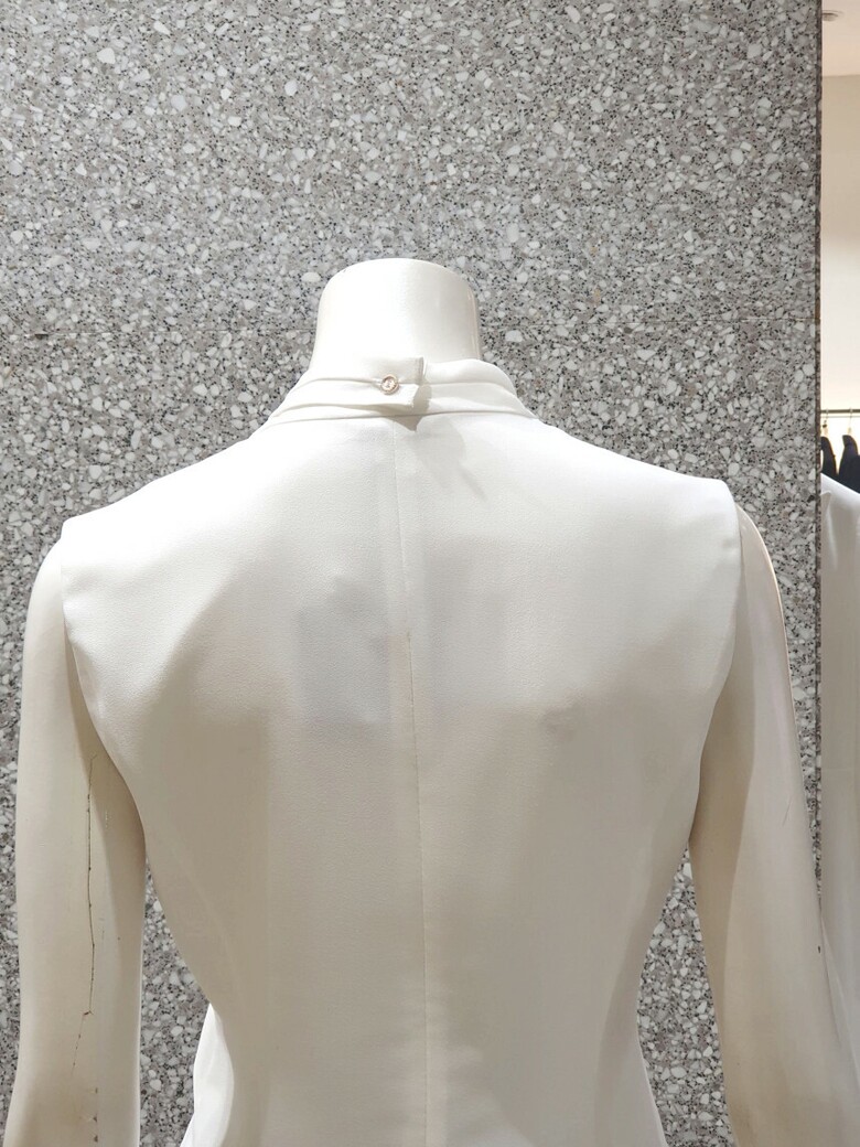 깔끔한 백 지퍼 클로징으로 마무리되어 완성도를 높여주며