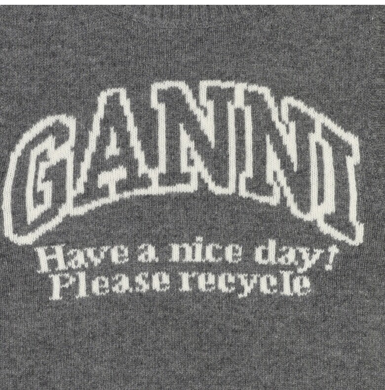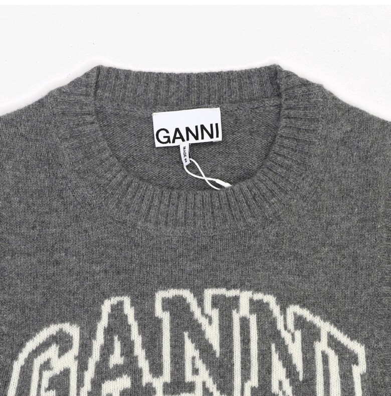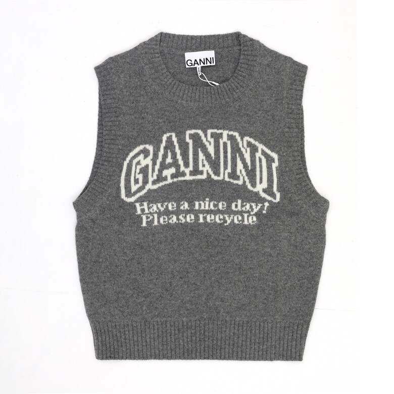 GANNI K2308 523 그래픽 로고 울 베스트 여성 니트