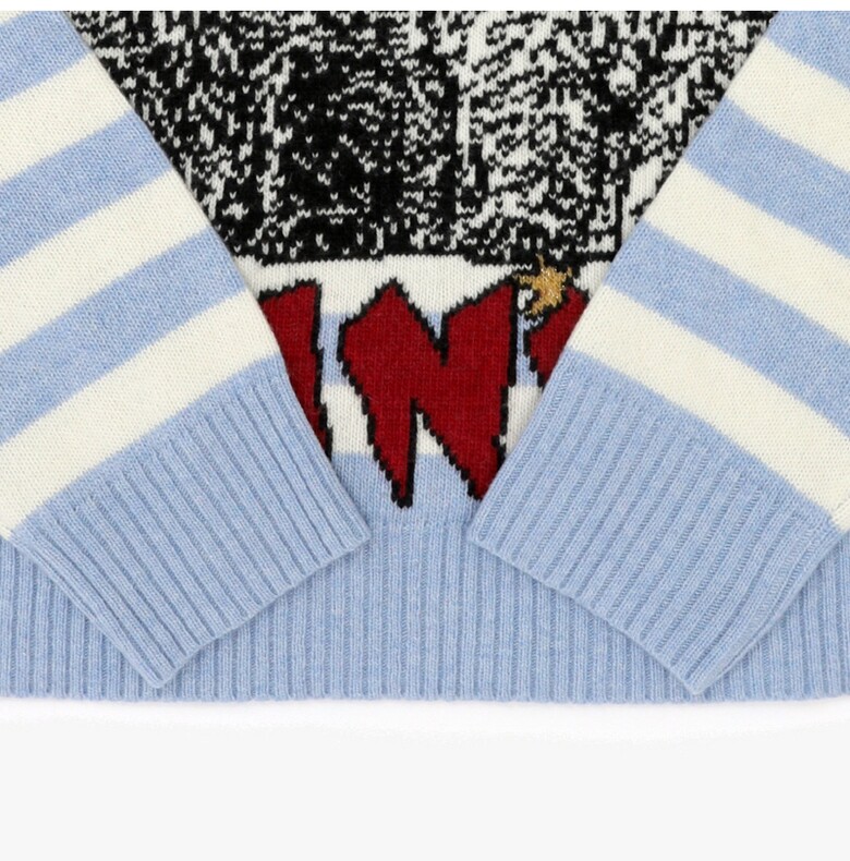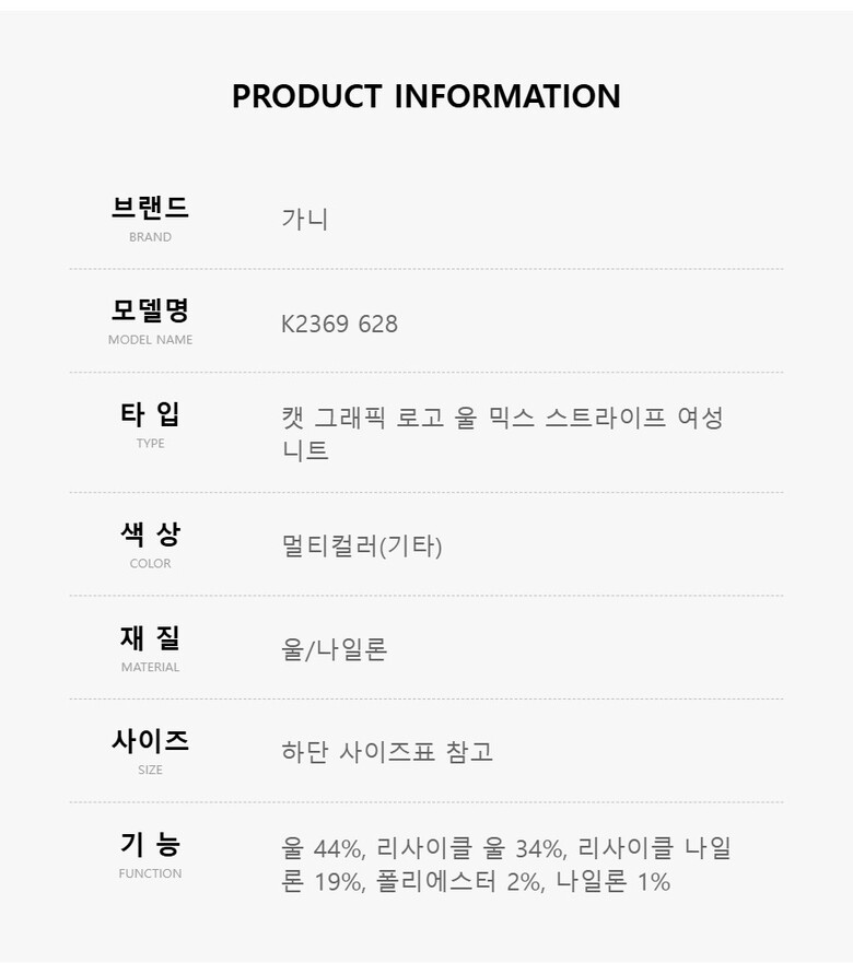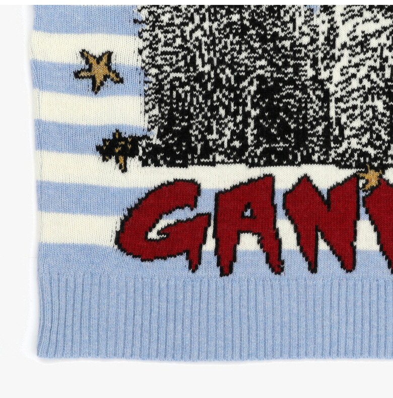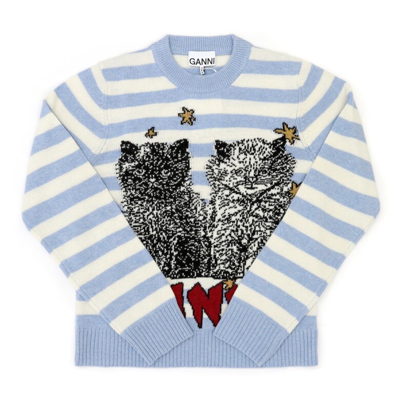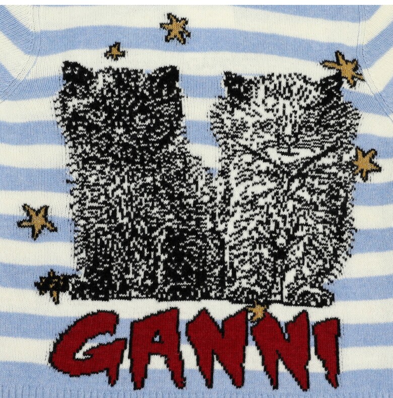 GANNI K2369 628 캣 그래픽 로고 울 믹스 스트라이프 여성 니트