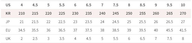 평소 착용하시는 운동화 사이즈보다 한 치수 작은 사이즈를 추천합니다.