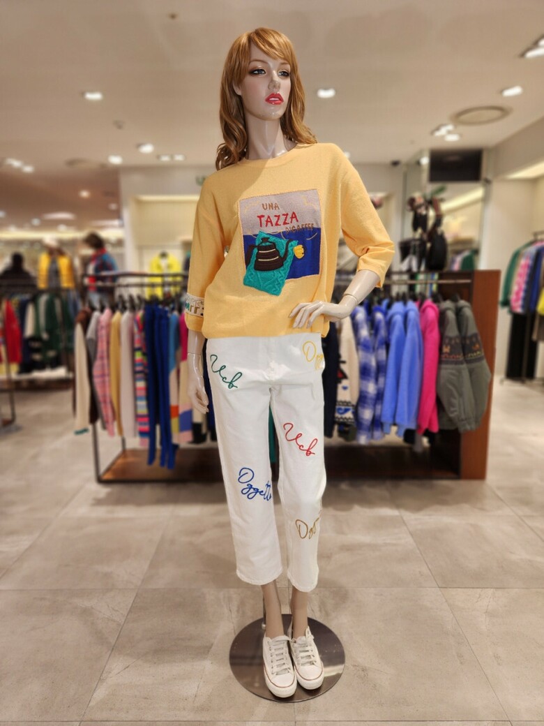 7.니트류는 자가드 프린트 기법으로 제작되어 앞부분에 예쁜 프린트처리가 되어 있습니다