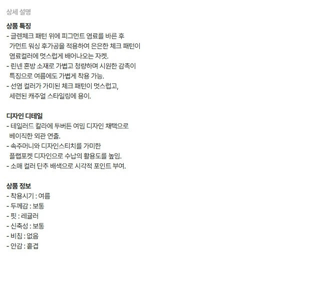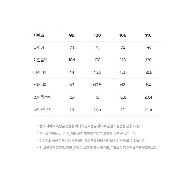 | 1. 제품 소재 (섬유의 조성 또는 혼용률을 백분율로 표시, 기능성인 경우 성적서 또는 허가서) | 상품상세참조 |