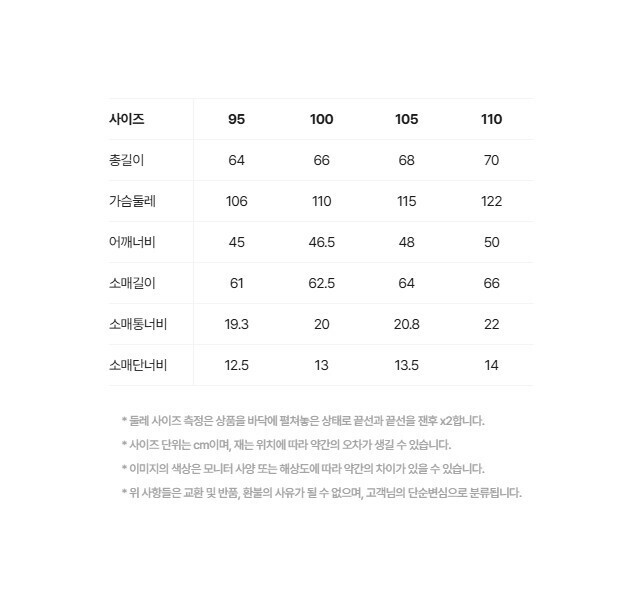 | 6. 세탁방법 및 취급시 주의사항 | 상품상세참조 |