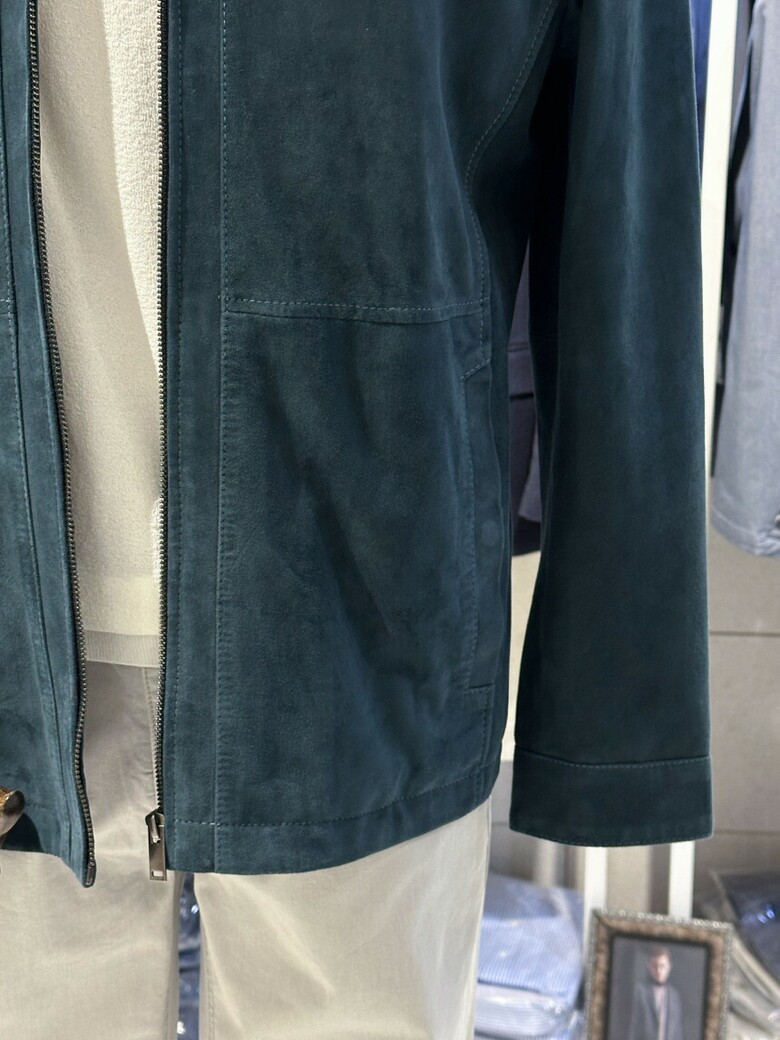 브렌우드 (천연산양가죽) 그린 고트 스웨이드 트러커 남자 가죽 점퍼자켓 BRUDX25211GRX