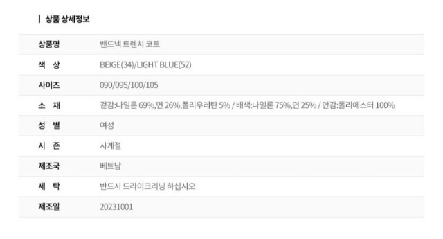 | 6. 세탁방법 및 취급시 주의사항 | 상품상세참조 |