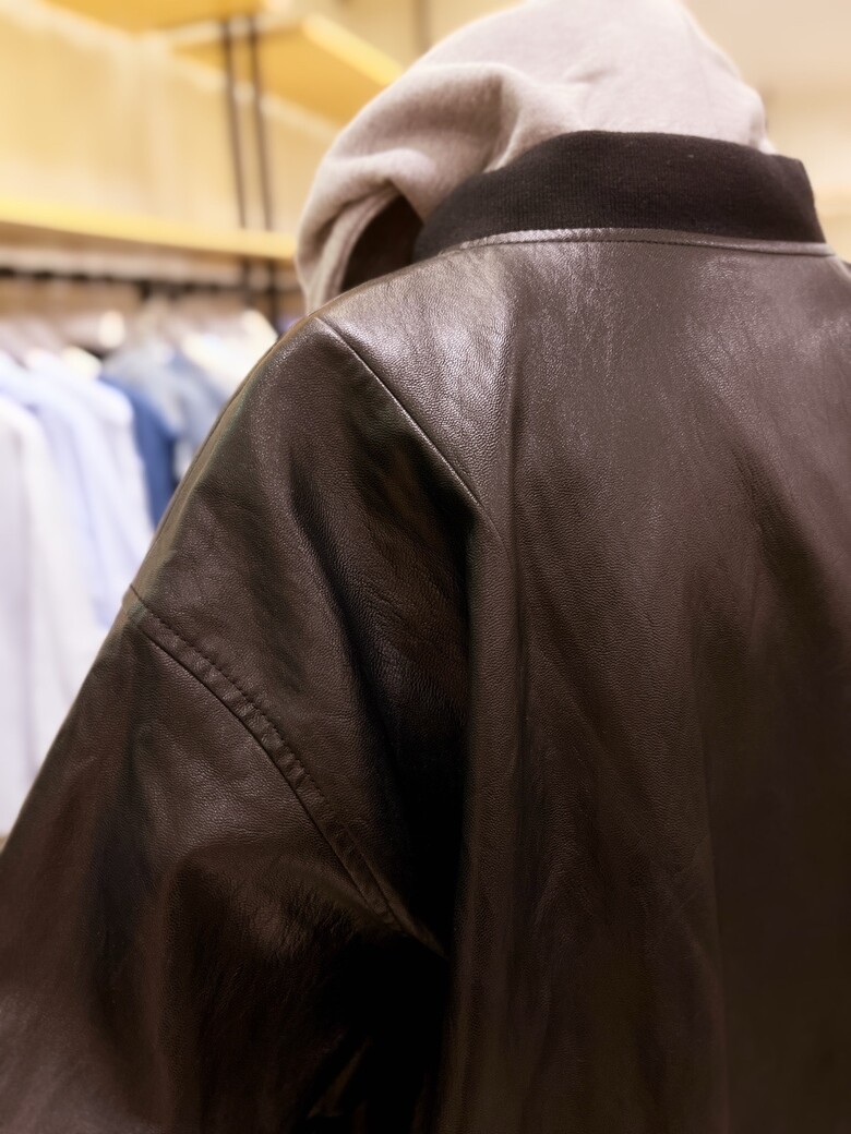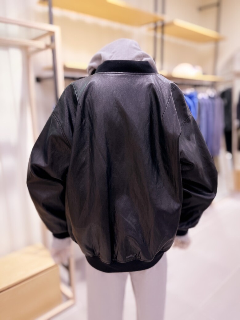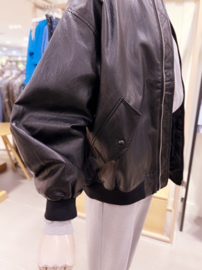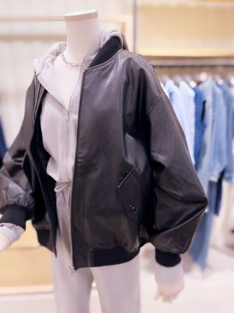 오버핏 스타일로 멋스러우며,매끄러운 인조 가죽 소재로 고급스럽고 은은한 광택감이유니크한 무드를 연출해 주어 다양한 룩에 멋스럽게 스타일링하기 좋은 아이템입니다.