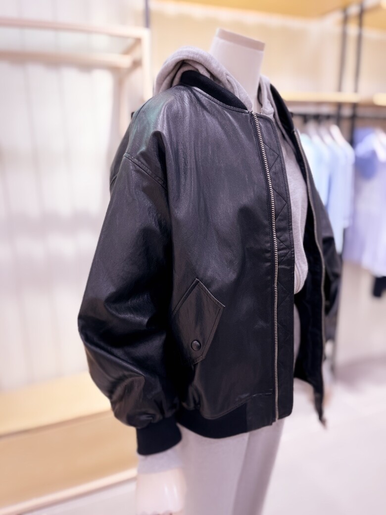 트렌디한 무드의 레더 점퍼 입니다.가벼운 소재이며,간편하게 활용하기 좋은 아이템입니다.