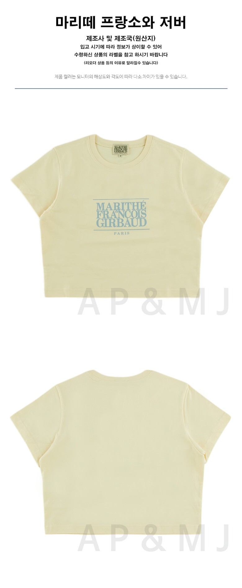 마리떼 여성 클래식 로고 크롭 티 MFG45CTS102 CRM
