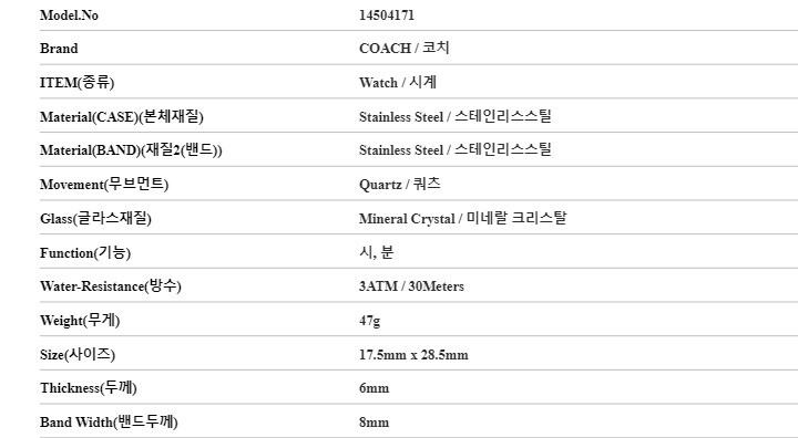 | 7-2. 시계 - 기능, 방수 등 | 상세페이지 참조 |