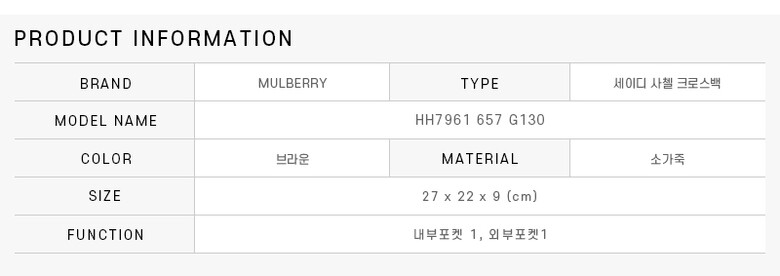 [명품] 멀버리 세이디 사첼백 브라운 HH7961 657 G130