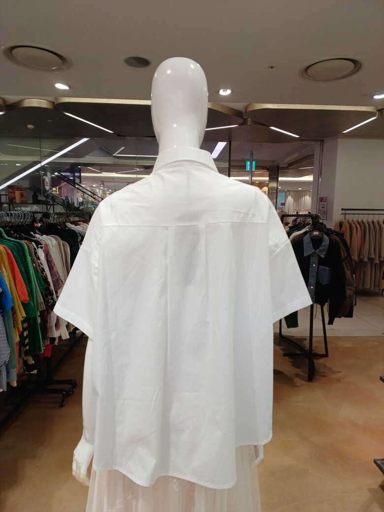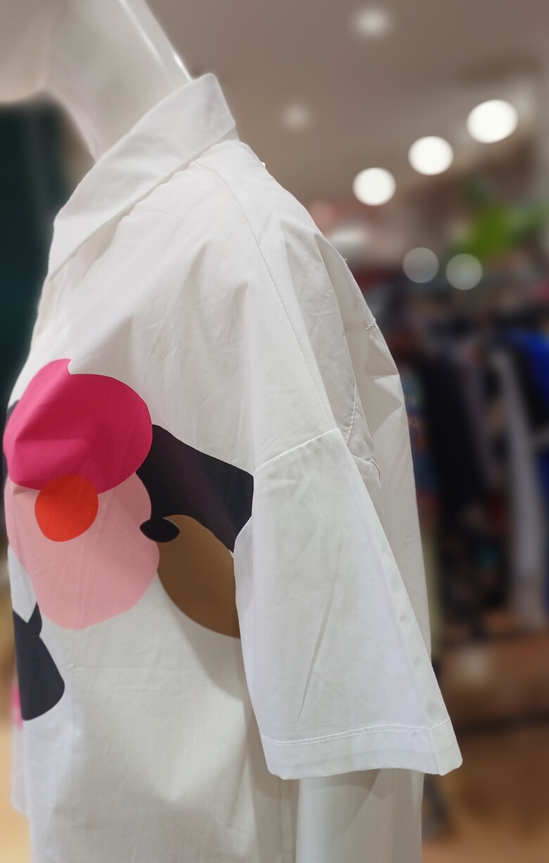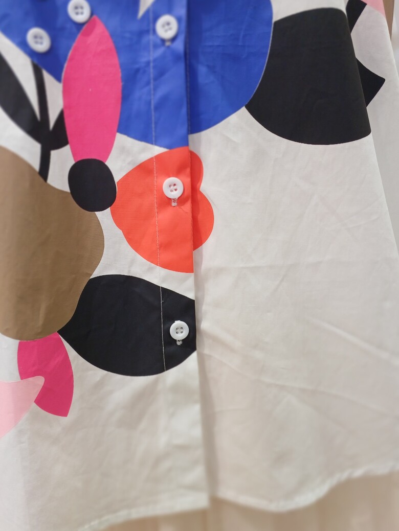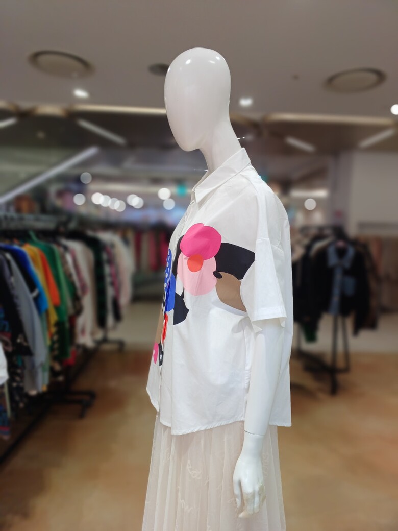 단추 장식 플라워 패턴이 포인트인 셔츠 블라우스입니다