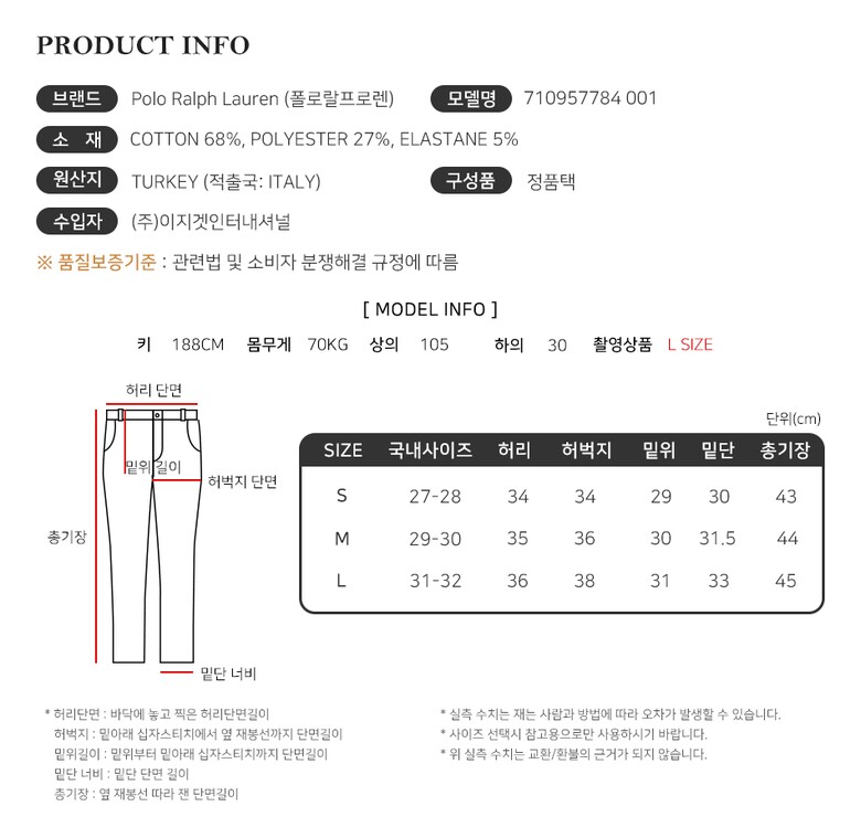 | 1. 제품 소재 (섬유의 조성 또는 혼용률을 백분율로 표시, 기능성인 경우 성적서 또는 허가서) | 상세페이지 참조 |