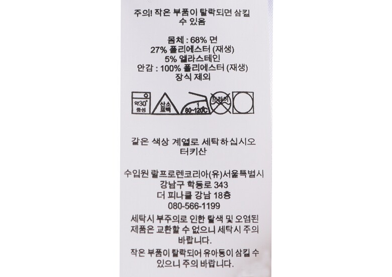 | 6. 세탁방법 및 취급시 주의사항 | 상품상세 참조 |