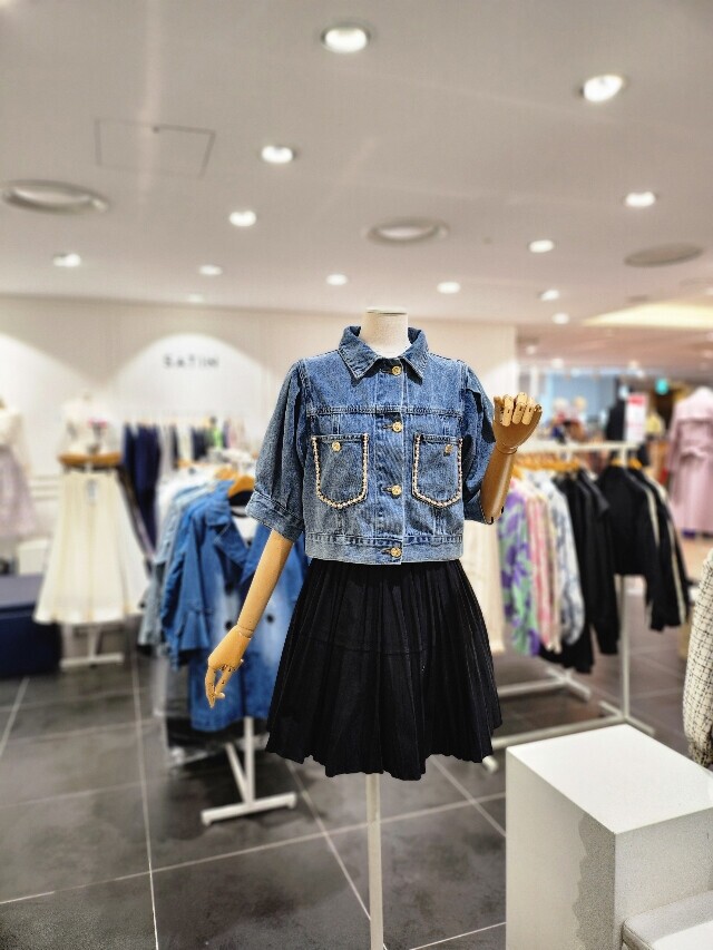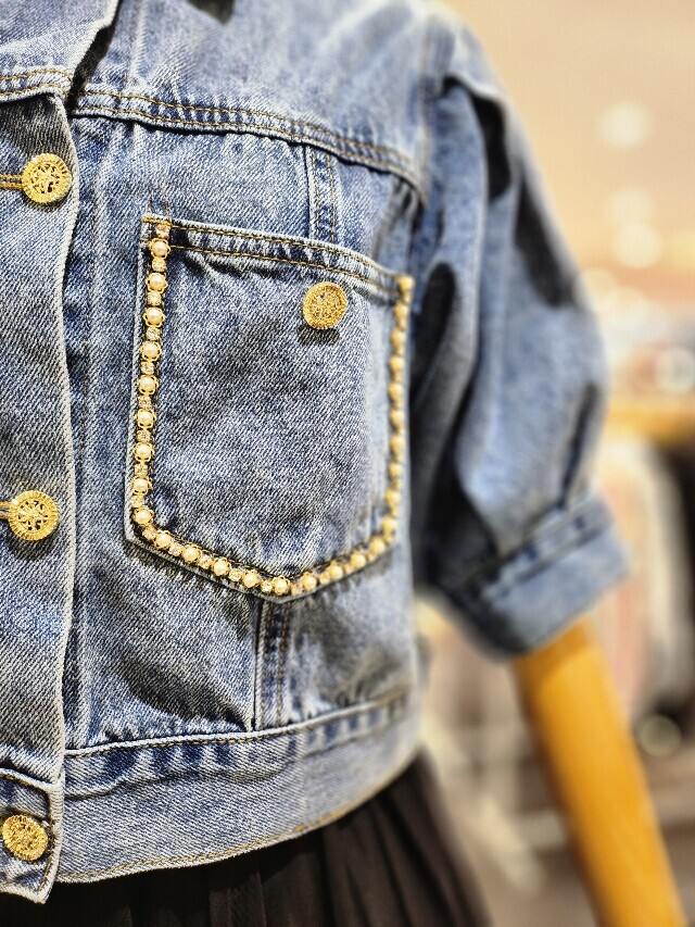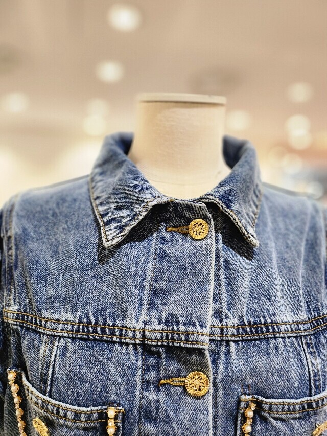 포켓 진주 장식 데님 자켓S252k101