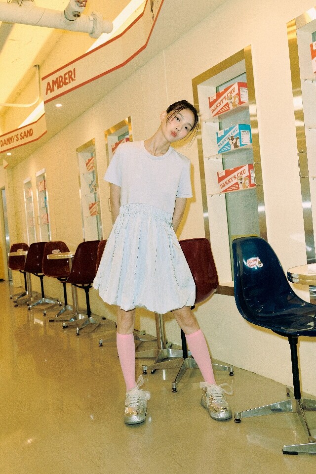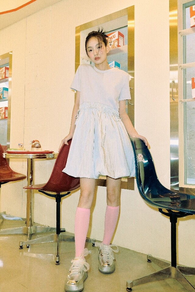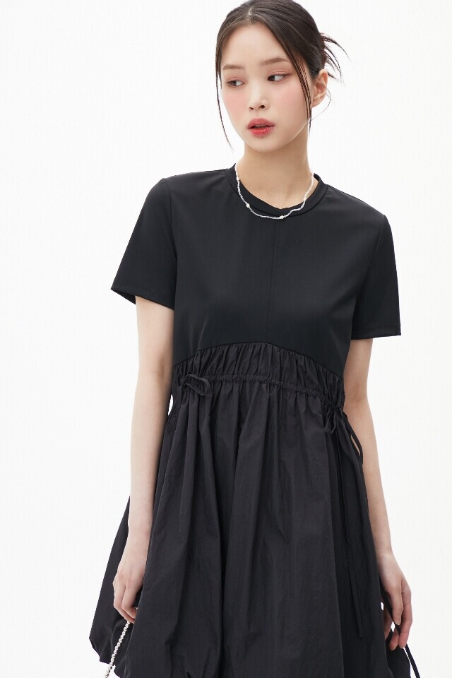 AQ2WO569 배색 벌룬 스커트 미니 원피스