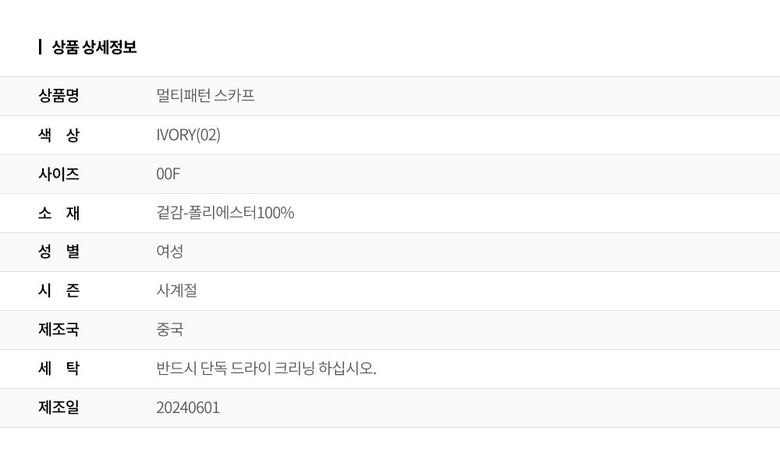 • 아울렛 상품의 특성 상 “택이 훼손”된 경우가 있으나 이는 불량이 아니며 무료 반품 대상 상품이 아닙니다.