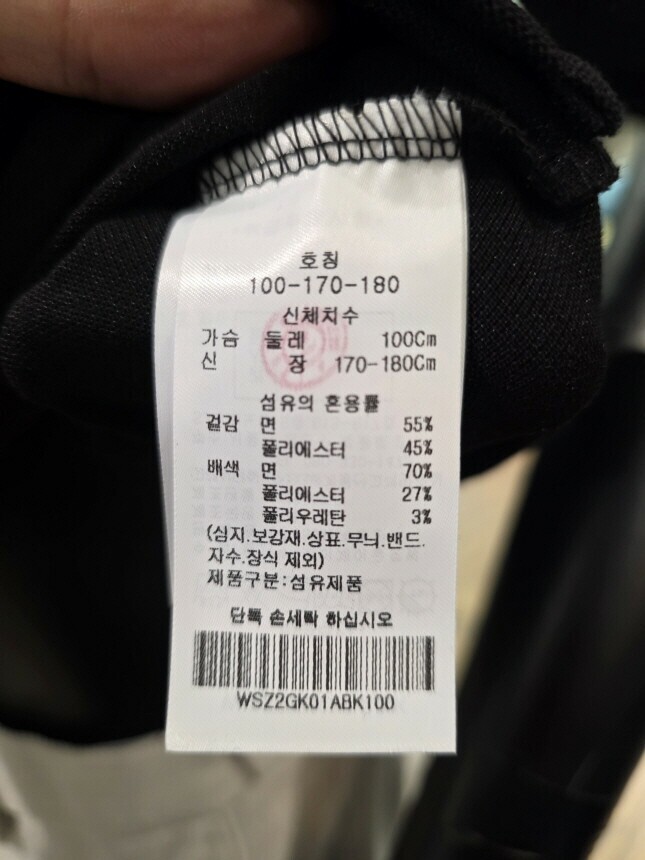 배색 : 면 70% , 폴리에스터 27% , 폴리우레탄 3%