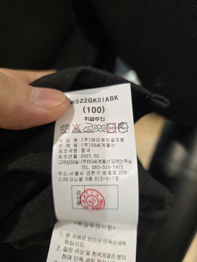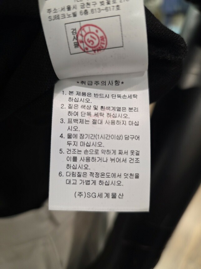 6. 세탁방법 및 취급시 주의사항 단독 손세탁 하십시오