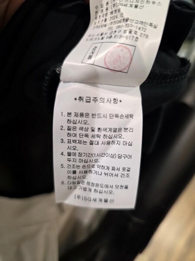 | 6. 세탁방법 및 취급시 주의사항 | 단독 물세탁 하세요 |