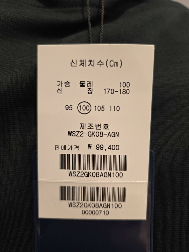 | 1. 제품 소재 (섬유의 조성 또는 혼용률을 백분율로 표시, 기능성인 경우 성적서 또는 허가서) | 겉감 :면 100% (심지,보강재,상표,무늬,밴드,자수,장식 제외) |