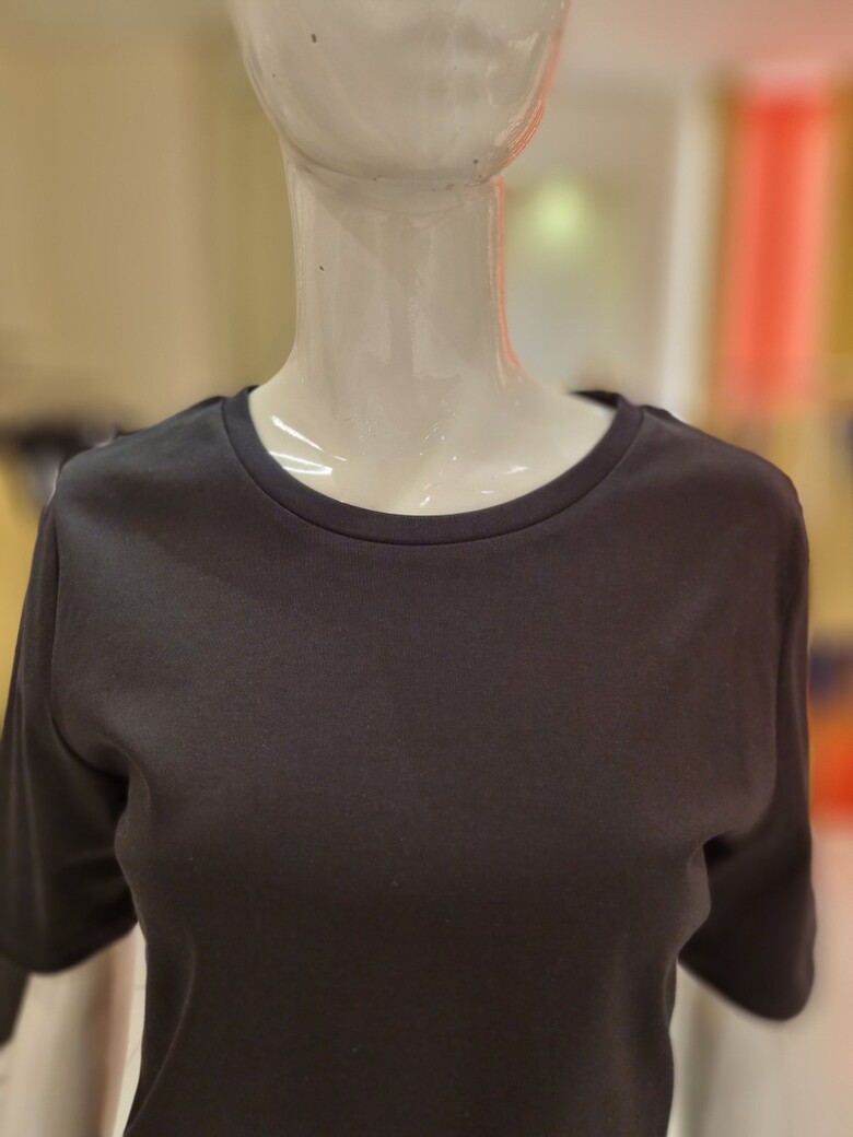 라운드넥에 반팔소매 면100% 중간두께감 기본면컷소우입니다.