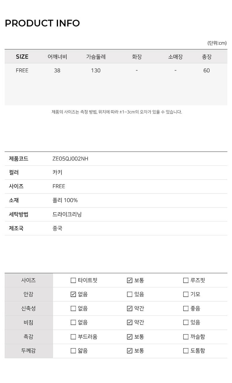 | 1. 제품 소재 (섬유의 조성 또는 혼용률을 백분율로 표시, 기능성인 경우 성적서 또는 허가서) | 상세설명참조 |