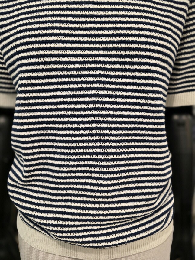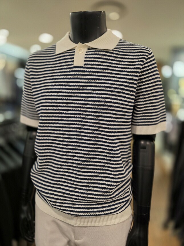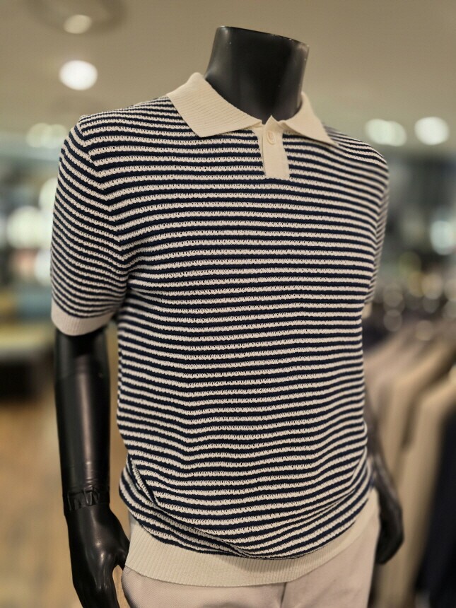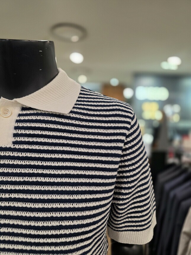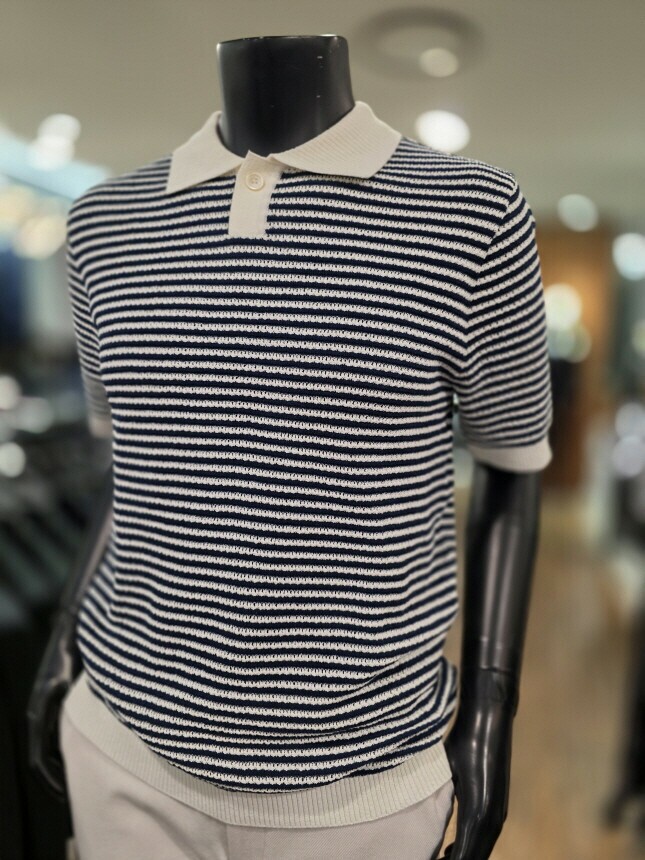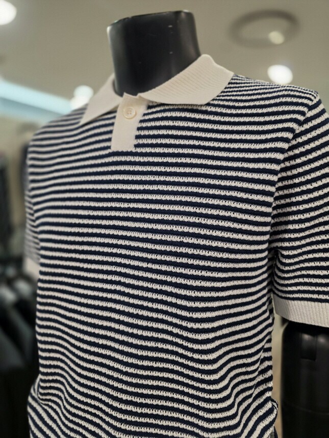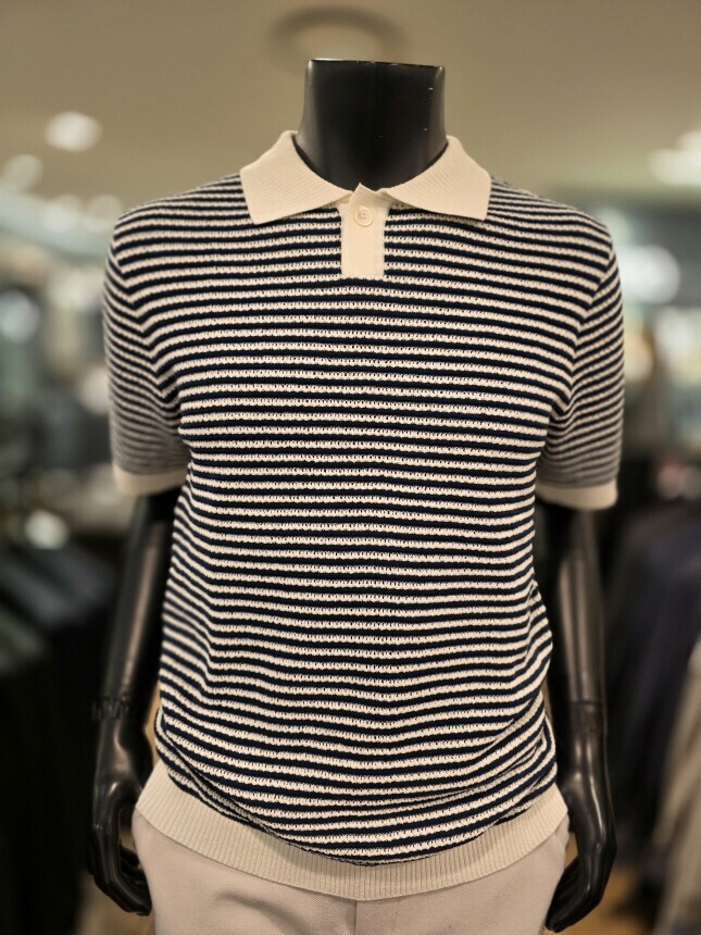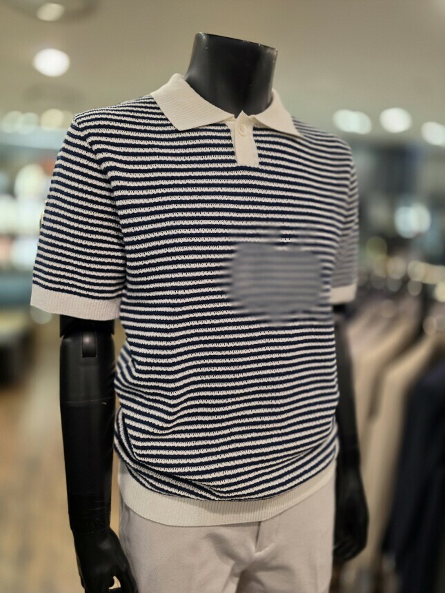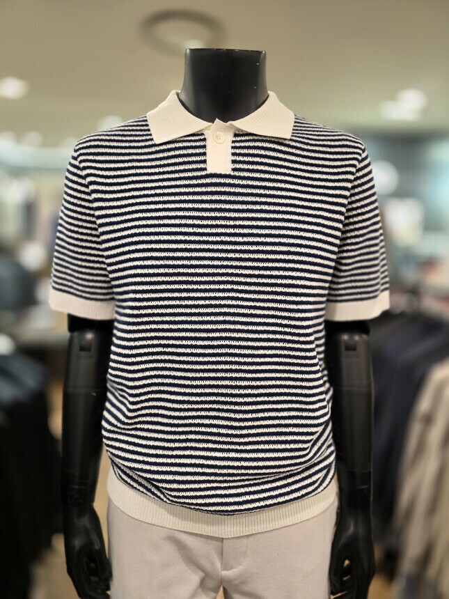 [바쏘옴므] Z2WT35A 25년S/S 네이비 단가라 피케티셔츠 스타일 베이직 니트