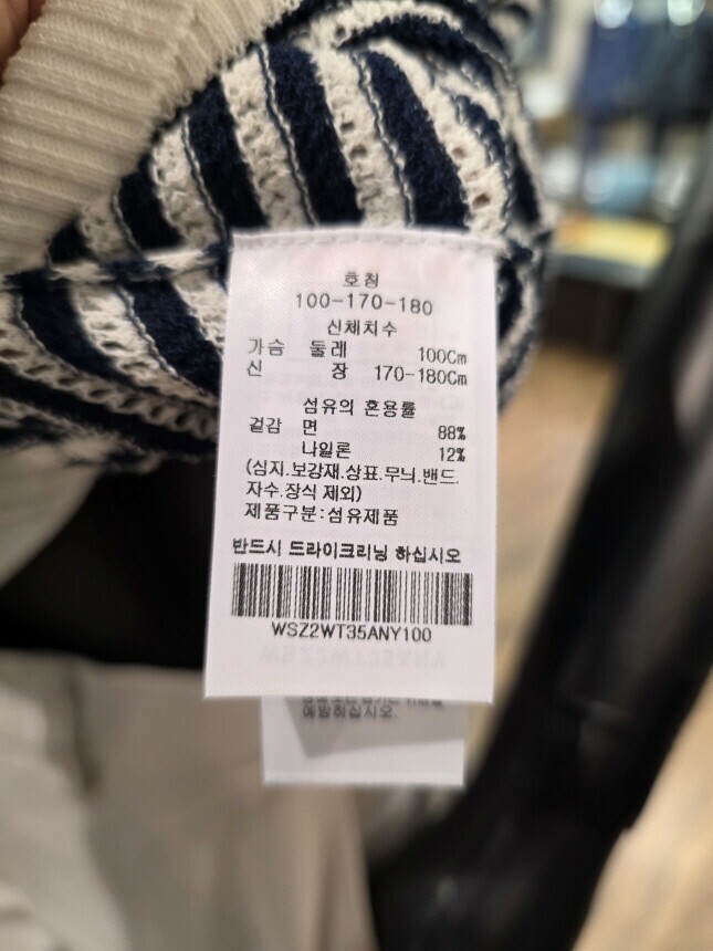 | 1. 제품 소재 (섬유의 조성 또는 혼용률을 백분율로 표시, 기능성인 경우 성적서 또는 허가서) | 겉감 : 면 88% , 나일론 12% (심지,보강재,상표,무늬,밴드,자수,장식 |