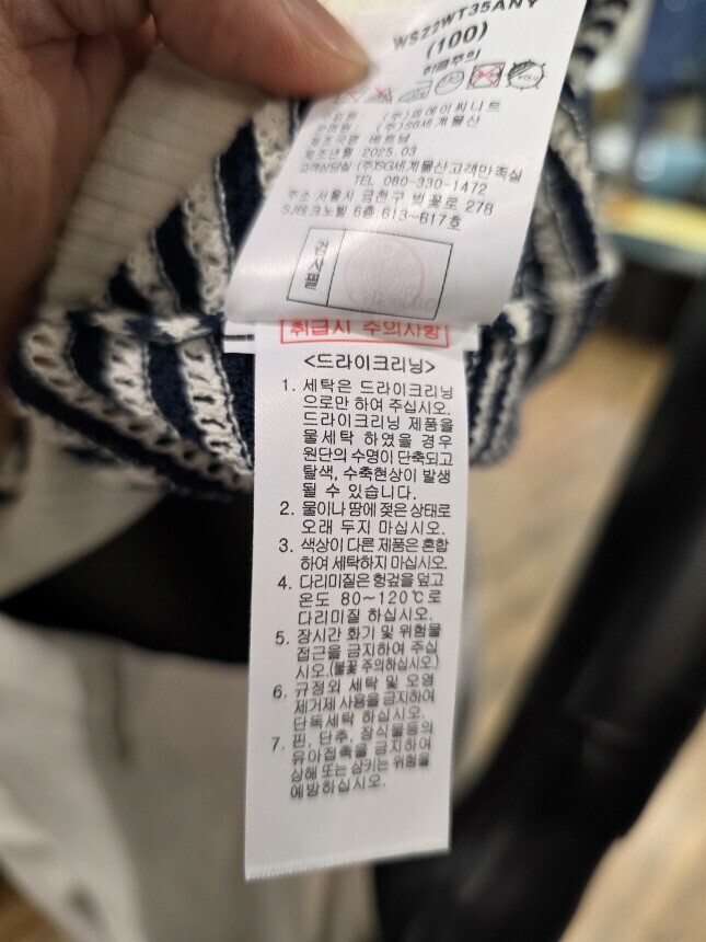 | 6. 세탁방법 및 취급시 주의사항 | 드라이크리닝 |