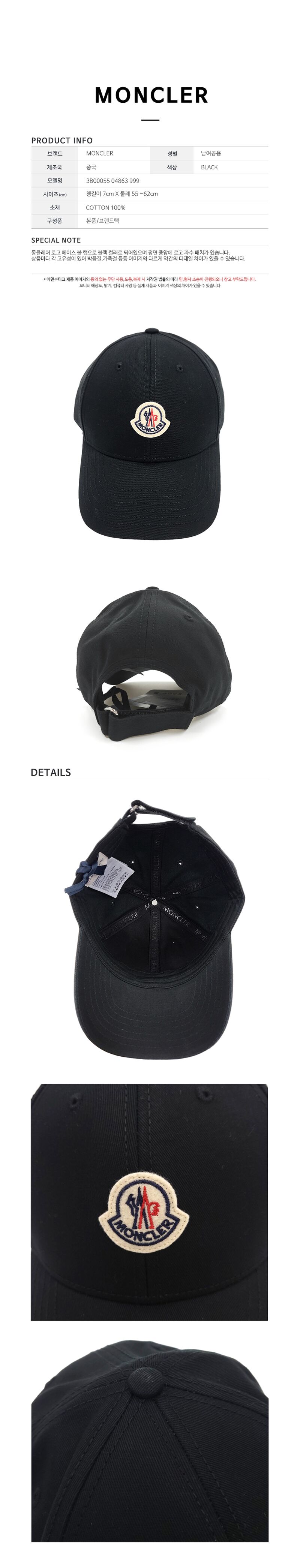 - #리본즈코리아 #3B0005504863999 #[명품] #25SS #몽클레어 #여성 #로고 #패치 #코튼 #볼캡 #모자 #블랙 #3B00055 #04863 #999 #패션잡화 #야구모자