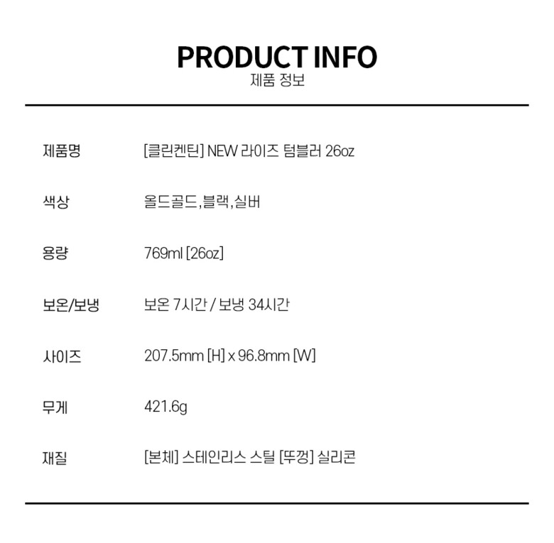 | 1. 품명 및 모델명 | [클린켄틴] 뉴라이즈 보온보냉 텀블러 769ml |