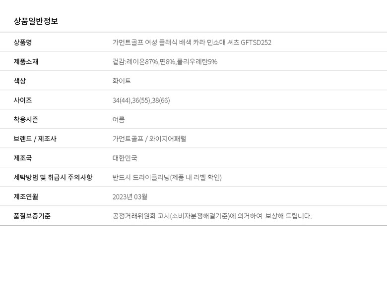 • 아울렛 상품의 특성 상 “택이 훼손”된 경우가 있으나 이는 불량이 아니며 무료 반품 대상 상품이 아닙니다.