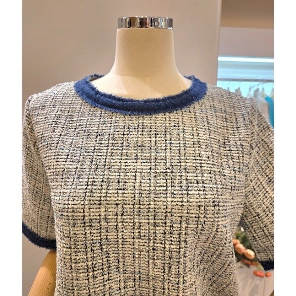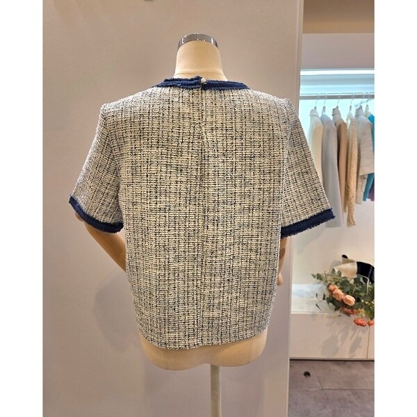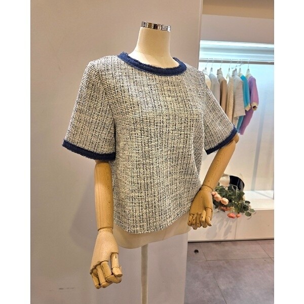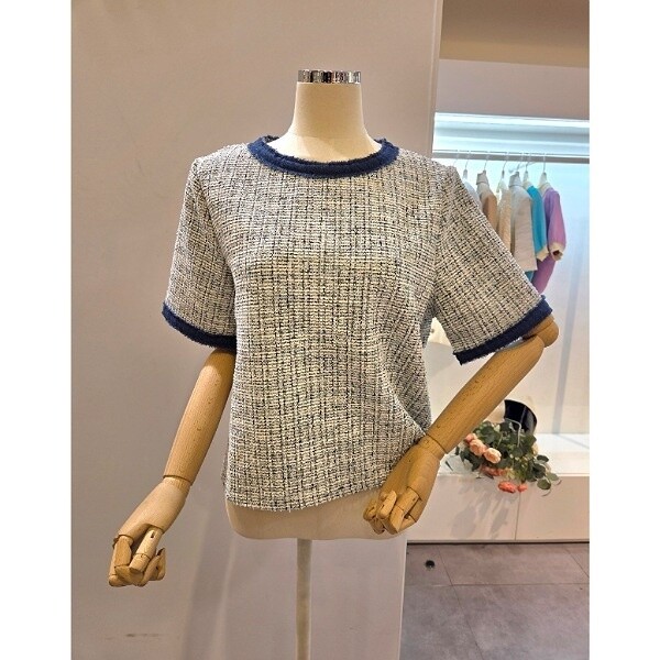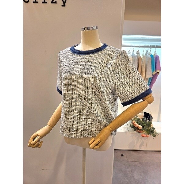 CP3WTS17_청 배색 트위드짜임 티셔츠