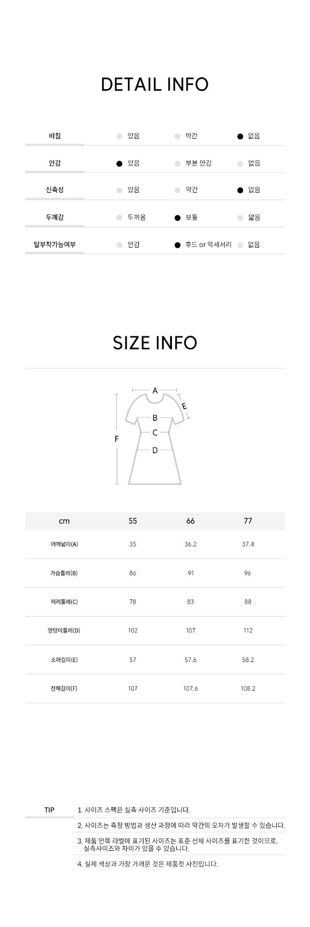 | 3. 치수 | 상품상세참조 |
