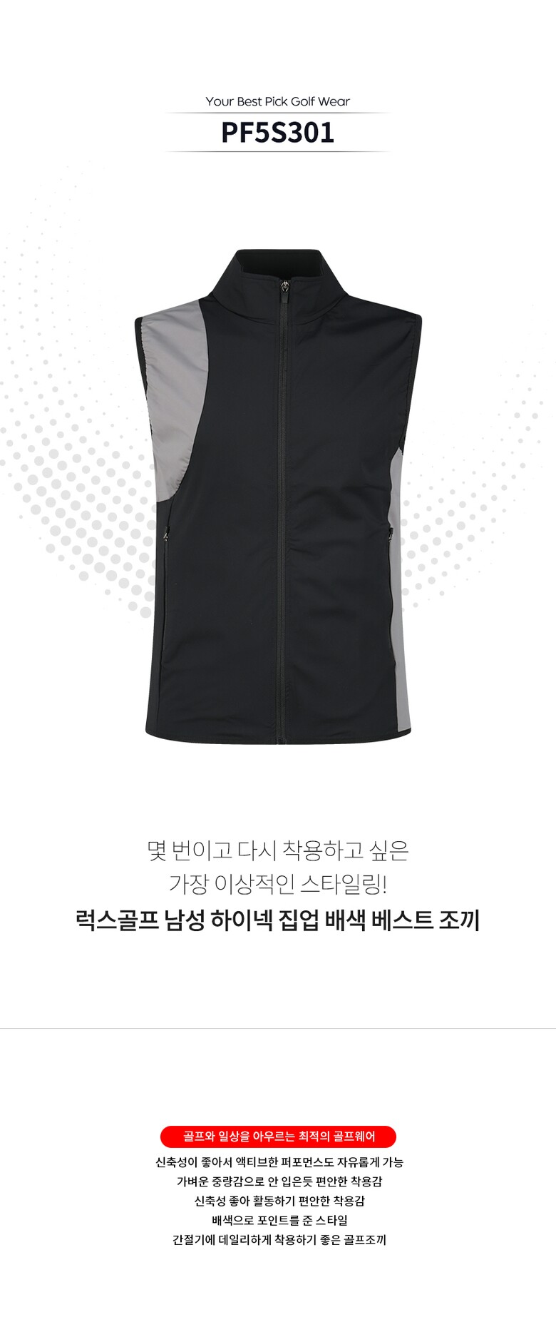 남자 봄 여름 골프웨어 골프 집업 배색 베스트 조끼 L170342