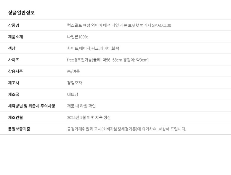 여성 골프모자 와이어 배색 테잎 리본 보닛햇 벙거지 L170351