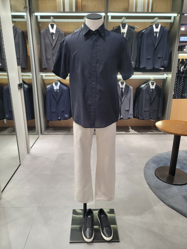 레귤러 카라 서커 반소매 셔츠 ABE2WC1203 NV