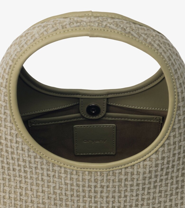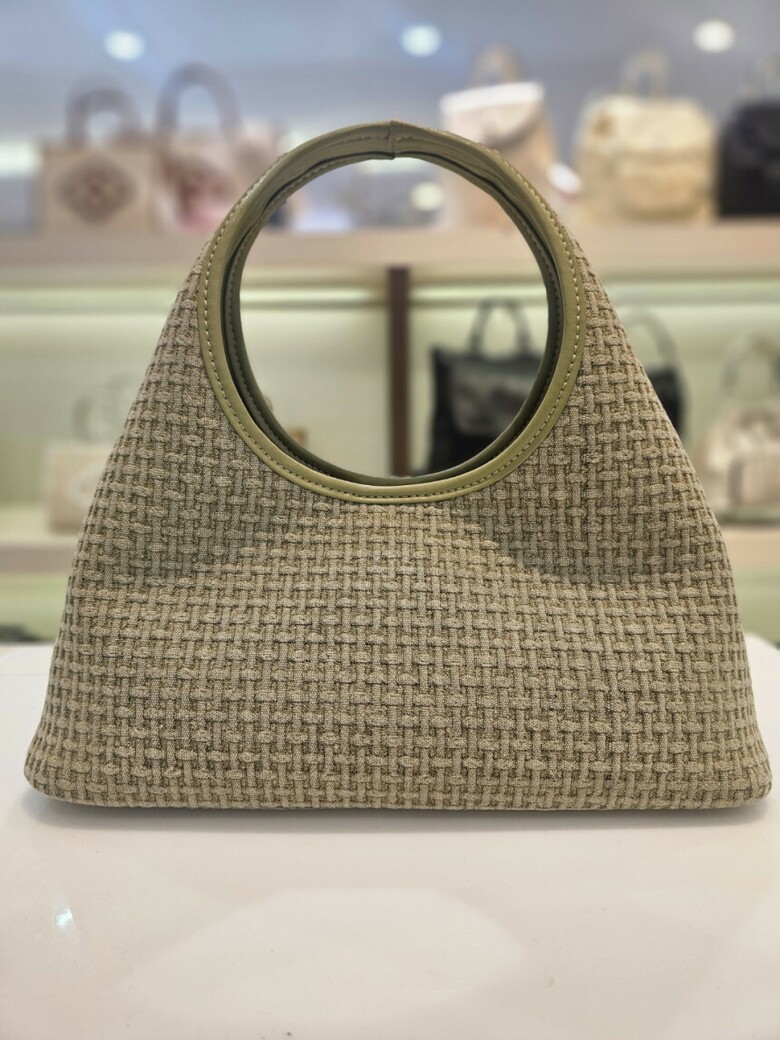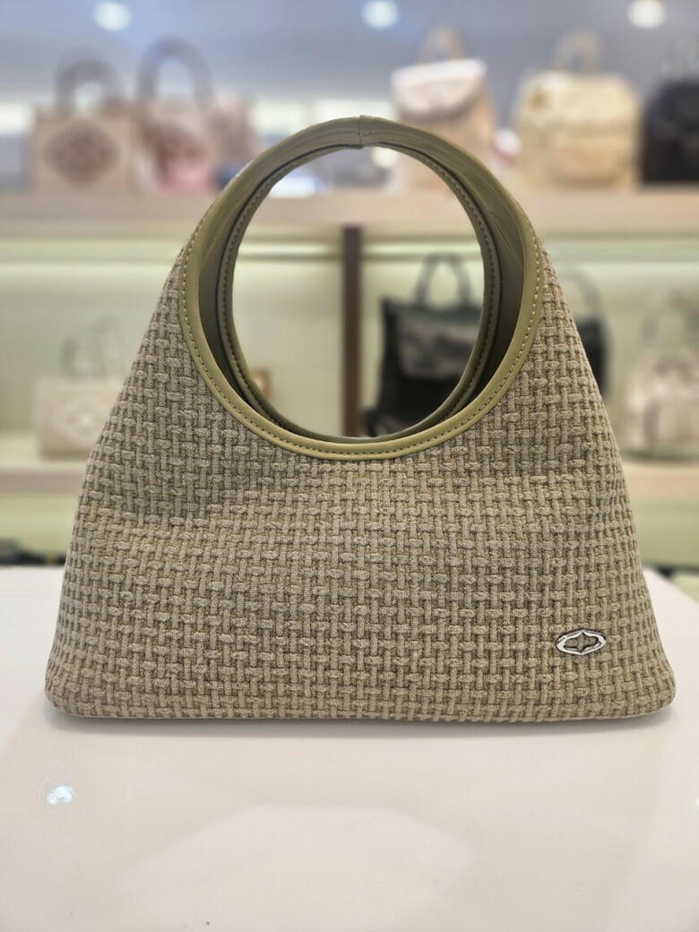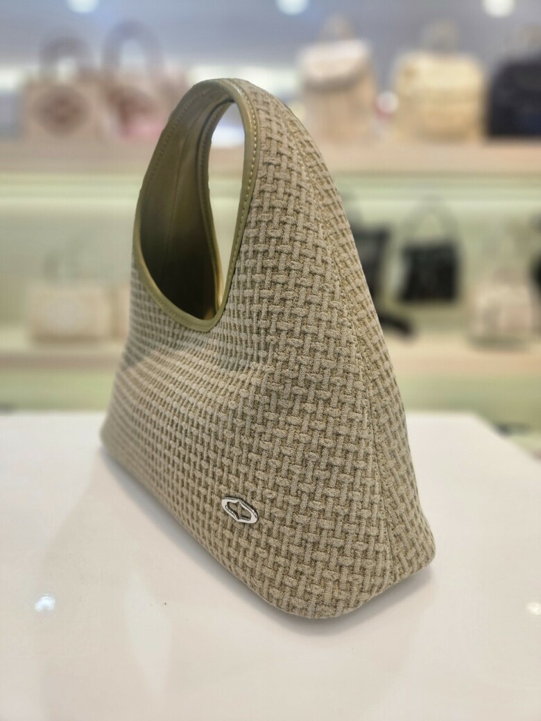 와플을 연상시키는 텍스쳐를 사용한 캔버스 소재의 토트백입니다.