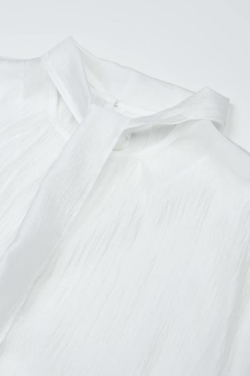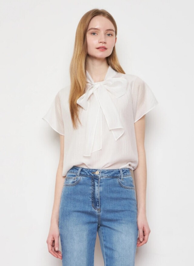 린 크롭소매 타이 블라우스 LCBLPE0100
