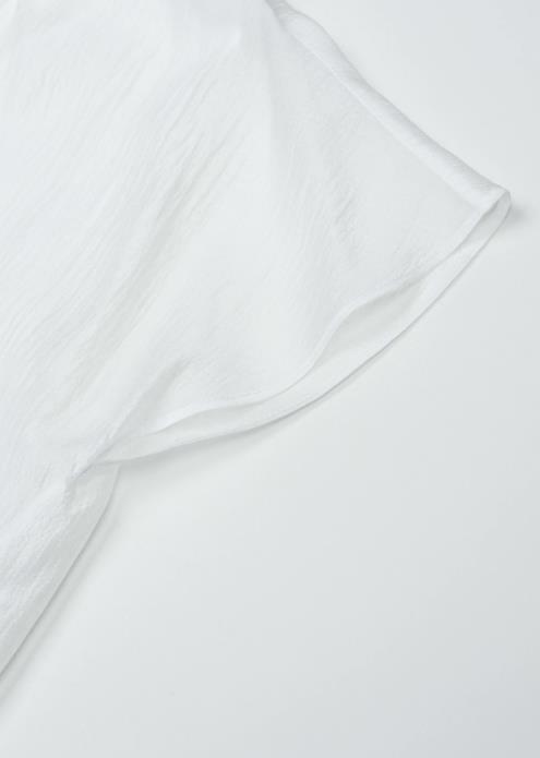 넥 라인에 셔링 주름을 잡아 입체감 있는 실루엣이 연출됩니다.